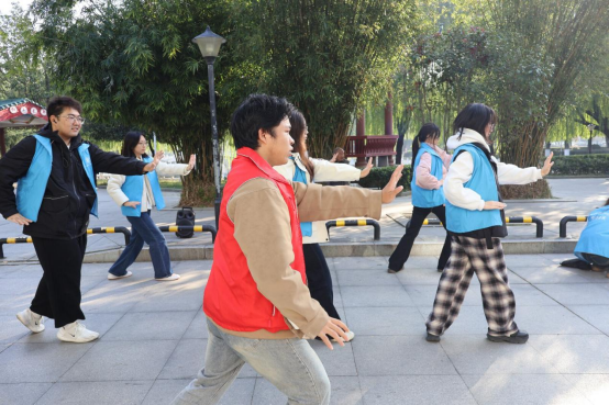 志愿者们身着统一服装,带来了精彩的太极拳表演。一招一式舒展流畅,既展现了传统文化的独特魅力,也吸引了大批居民驻足观看,为反诈宣传营造了浓厚氛围。针对中老年居民,志愿者们还手把手教授简化版太极拳基础招式,并巧妙融入反诈口诀——“起势凝神防骗局,云手护好钱袋子,收势牢记不转账”,让居民在强身健体的同时,轻松记住防骗要点。