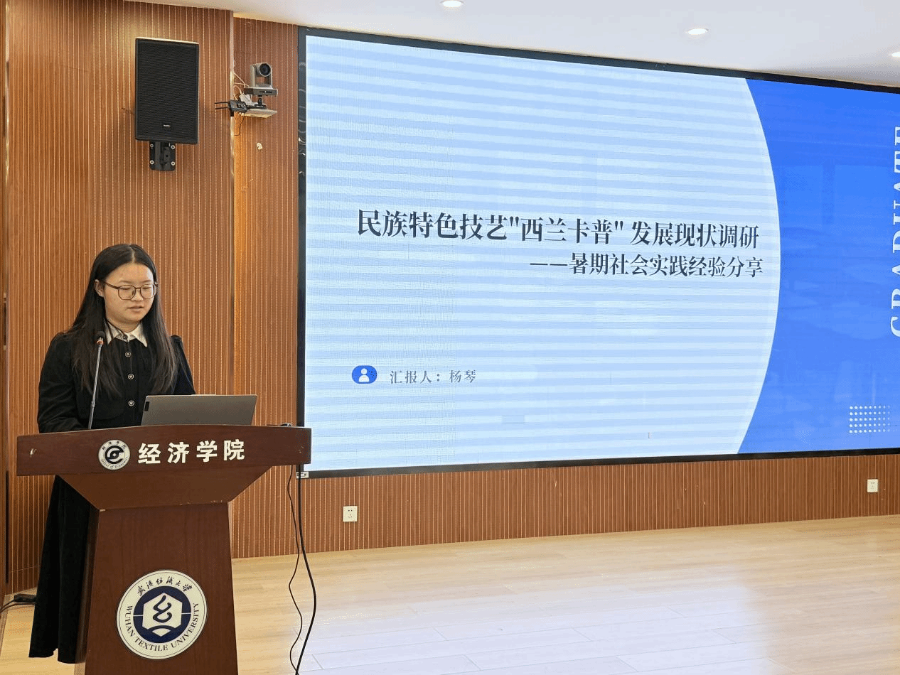 在论坛分享环节,五位主讲人围绕实践调研与学术研究主题展开精彩报告。杨琴同学以《民族特色技艺“西兰卡普”发展现状调研-暑期社会实践经验分享》为题,结合暑期民族地区实地调研,介绍“西兰卡普”的传承现状、市场需求与文化价值,既分享技艺传承亮点,也剖析人才短缺、传播有限等问题,并结合实践心得为同学们提供调研方法参考。江子龙同学以《一剂财政“处方”:综合医改如何调理地方财政纵向失衡》为题,聚焦地方财政纵向失衡,从综合医改背景与内容出发,分析其在优化财政支出、平衡央地财政关系中的作用路径,结合案例阐述政策效果,提供财政与医疗协同发展的学术视角。秦腾同学以《绿色信贷政策对高污染企业绩效的影响研究》为题,立足绿色金融趋势,围绕绿色信贷的约束与引导功能,结合企业财务数据与经营指标,实证分析政策对企业盈利能力、转型效率的影响,为完善绿色信贷机制、推动企业绿色转型提供数据支撑。李玉蕊同学以《耐心资本赋能新创企业韧性:企业风险投资和独立风险投资的差异化作用》为题,聚焦“耐心资本”对新创企业的价值,对比两类风险投资在周期、资源、退出机制上的差异,分析其在提升企业抗风险能力中的不同作用,为企业融资选择提供理论参考。倪代聪同学以《政府产业引导基金对企业创新绩效的影响研究》为题,围绕政府产业引导基金的目标与模式,结合企业专利、研发投入等指标,探究基金对企业创新能力的激励效果,分析其引导社会资本、推动技术突破的作用,为优化基金管理、提升创新效能提供思路。