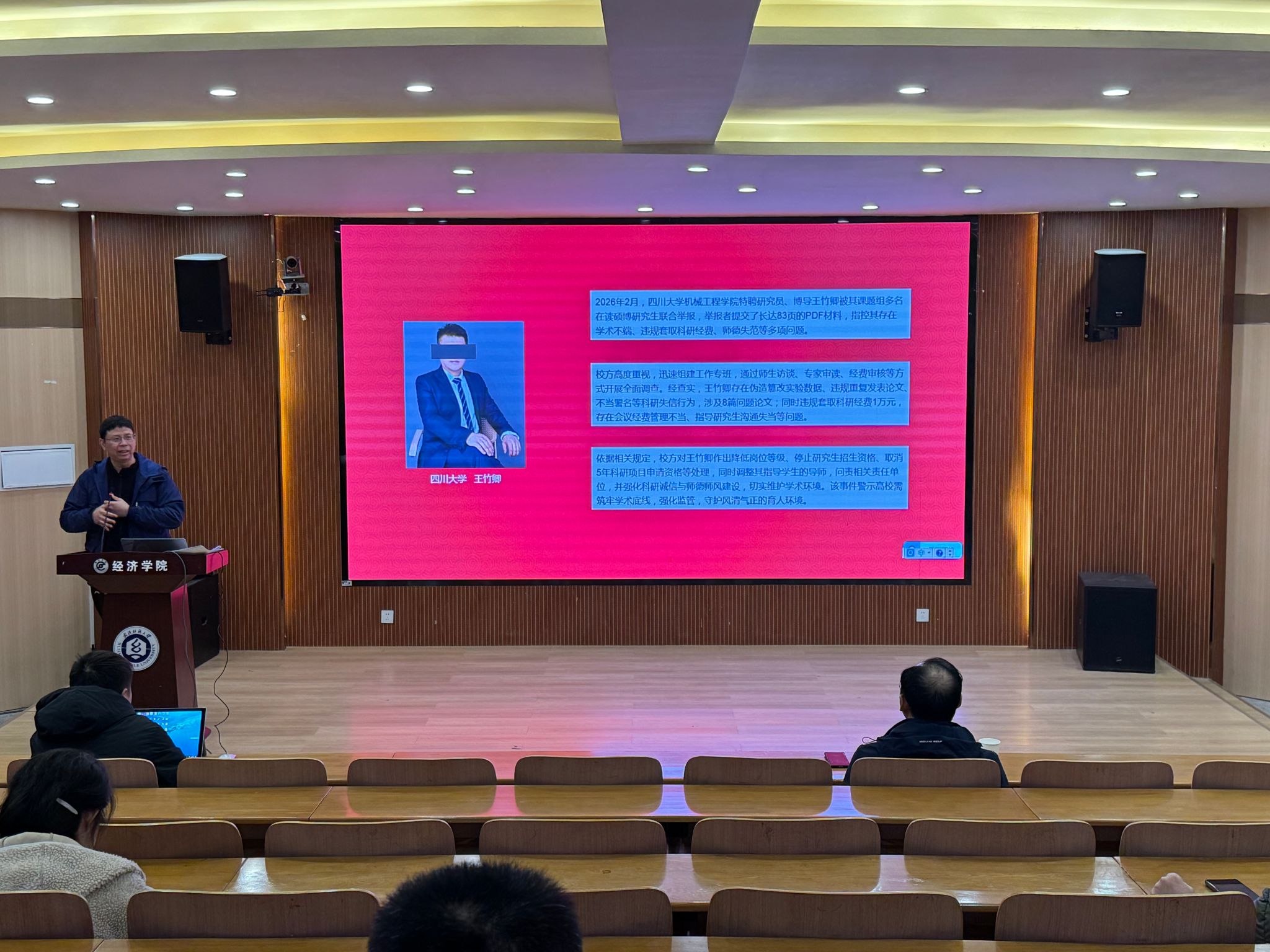 结合学院工作实际,刘园美强调,2026年是学校“学科建设与干部素质提升年”,学院要以全会精神为指引,聚焦深化政绩观学习教育、强化人才引育、聚焦科技创新、坚守安全底线四大重点任务开展工作。同时,他结合近期四川某高校学术不端案例,强调全体教职工要严守师德师风底线,筑牢学术诚信防线,共同营造风清气正的育人环境。